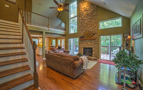 Amazing 3 story home overlooking Table Rock Lake with two wrap around covered decks and serene forest views from the private hot tub.